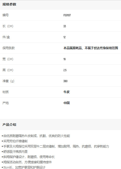 首頁>產(chǎn)品中心>手部防護(hù)>手套>世達(dá)斜指焊接手套L