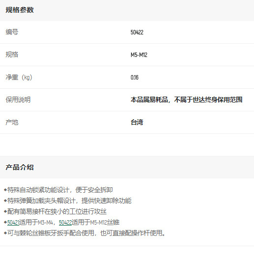 首頁>產(chǎn)品中心>其他手動工具>其他手動工具及配件>世達絲錐轉(zhuǎn)接頭M5-M12