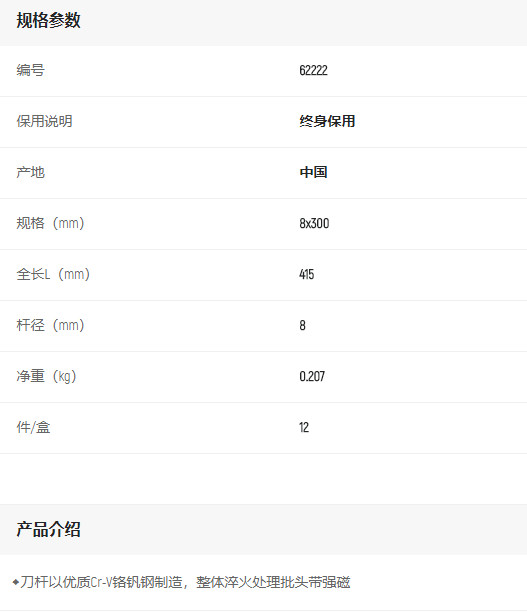 產(chǎn)品名字:世達(dá)A系列一字批8x300mm