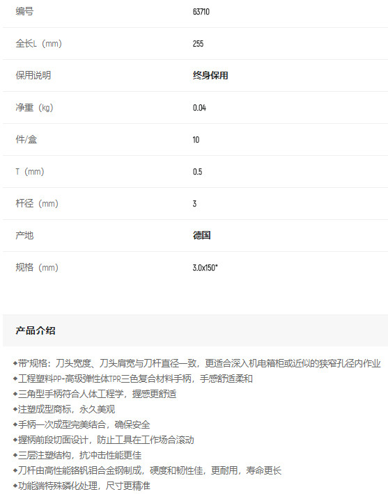 產(chǎn)品名字:世達(dá)G系列一字批3*150mm