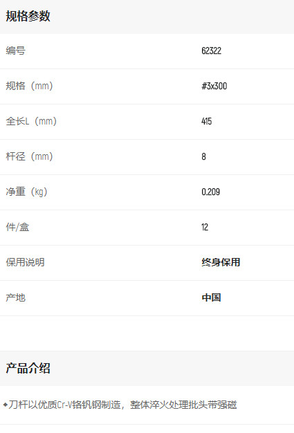 產(chǎn)品名字:世達(dá)A系列十字批#3*300mm