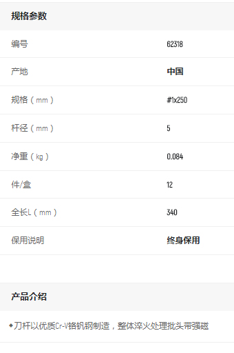 產(chǎn)品名字:世達(dá)A系列十字型螺絲批1*250MM